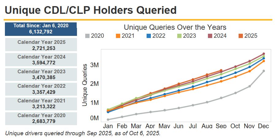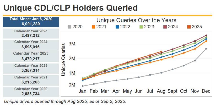 Since January 6, 2020, 6,091,280 unique driver records have been queried.