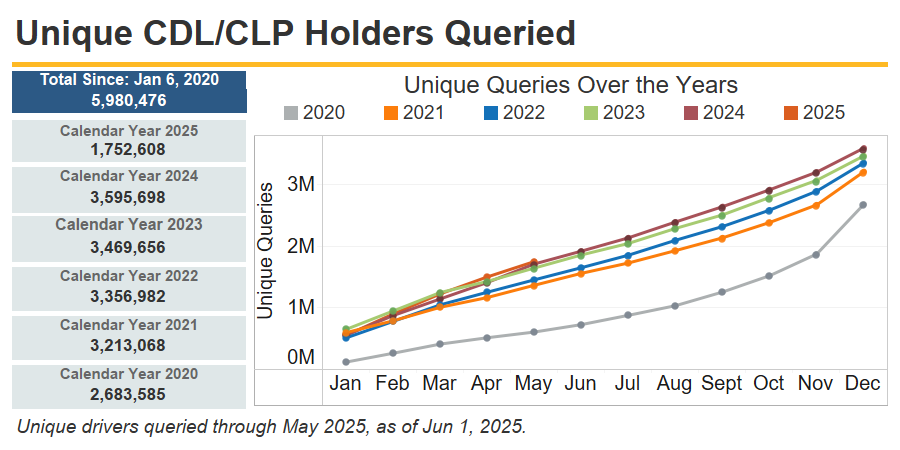 Since January 6, 2020, 6,060,134 unique driver records have been queried.